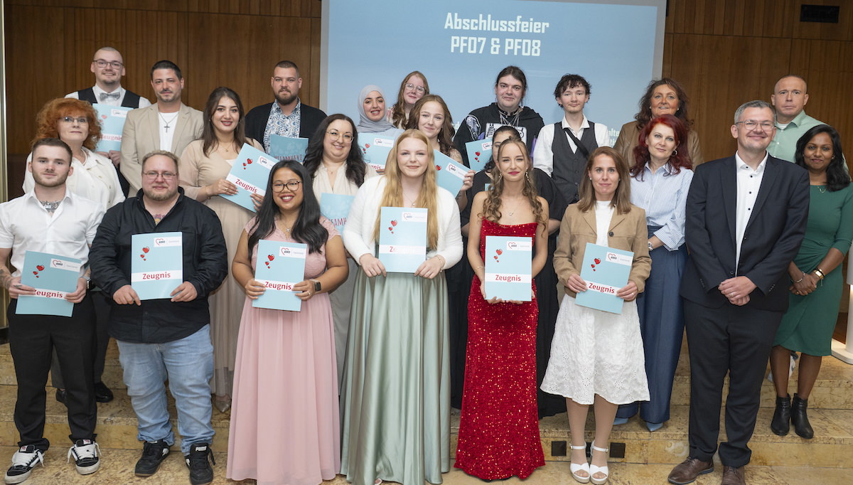 Ein besonderer Dank ging an die Kursleitungen, Praxisanleiter, Einrichtungen und das Team der Akademie. Sie hätten die Auszubildenden nicht nur durch fachliche Kompetenz begleitet, sondern auch Mut gemacht und Zuversicht geschenkt. „Mit Geduld, Kompetenz und ganz viel Herzblut haben Sie dafür gesorgt, dass niemand aufgibt, der eine Chance verdient hat“, so Jodko.