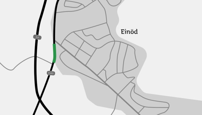 Während der Umstellung wird der Verkehr über die parallel verlaufende Strecke östlich der B 423 durch den Bereich Einöd geführt und anschließend wieder auf die B 423 zurückgeleitet.