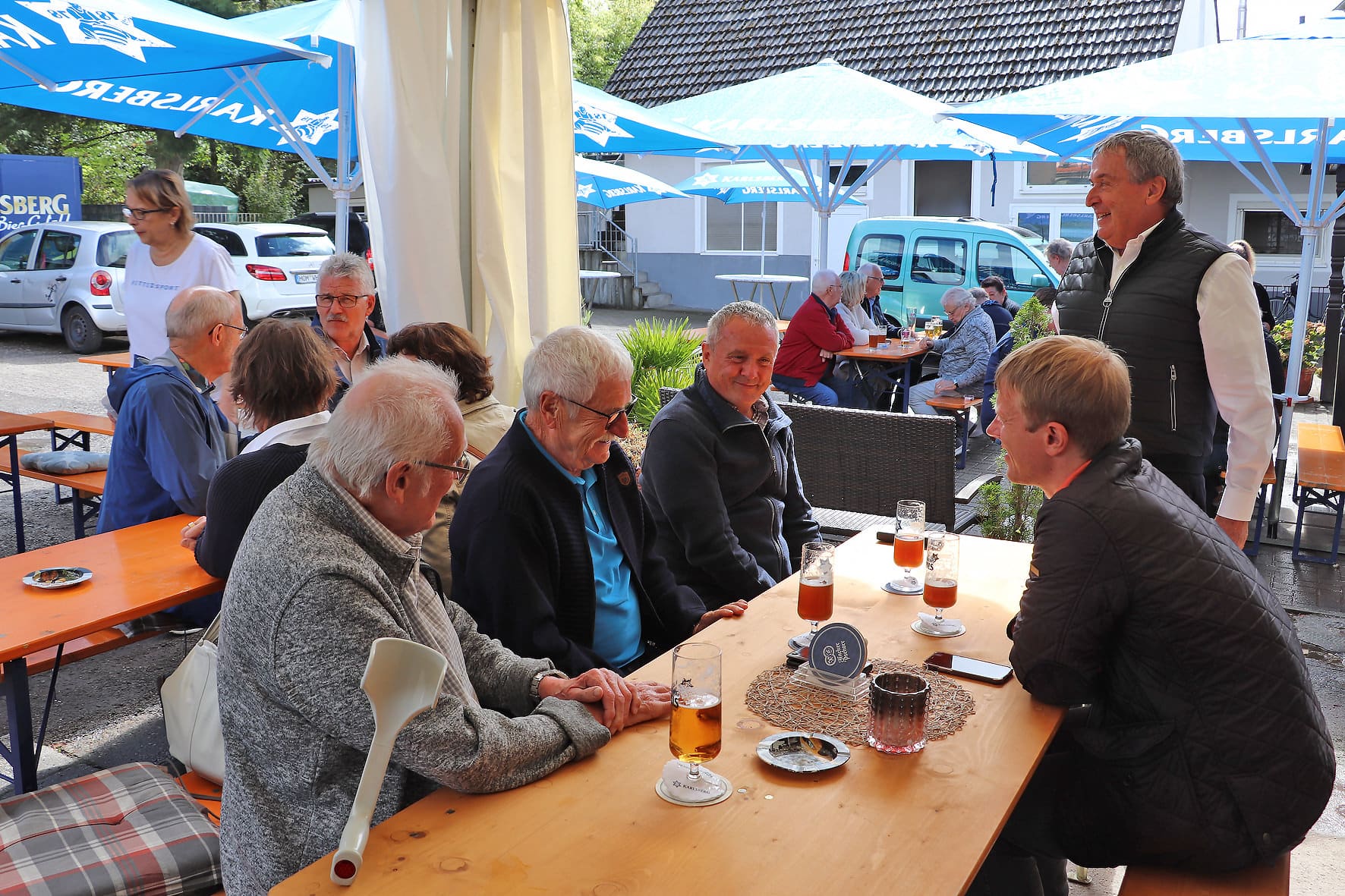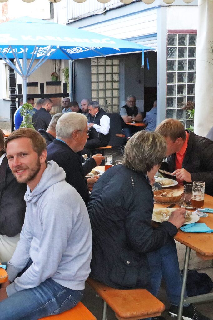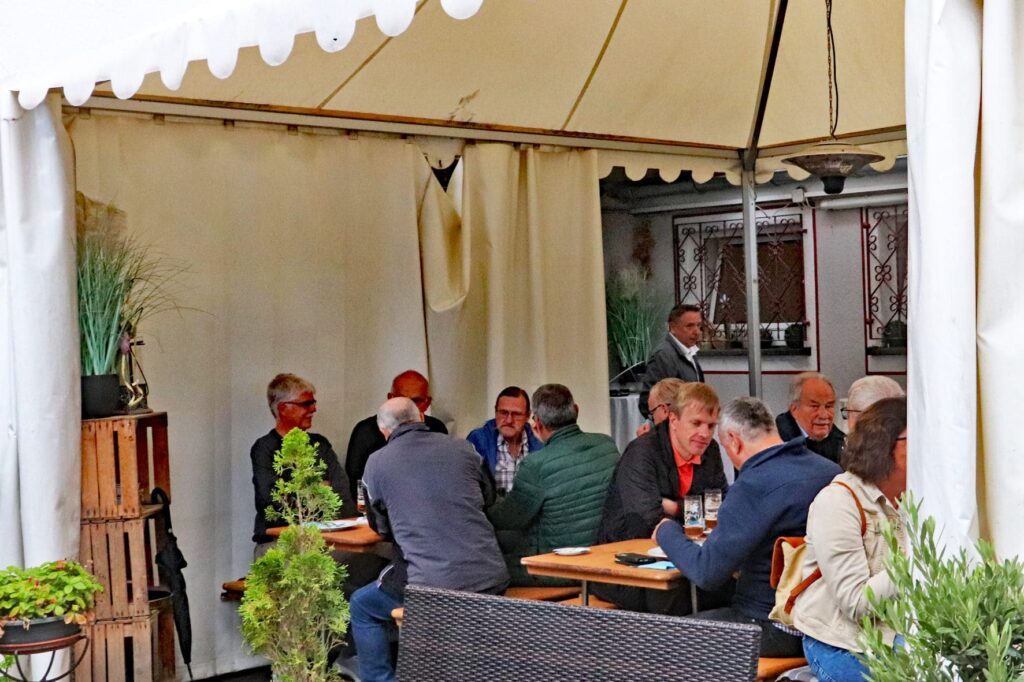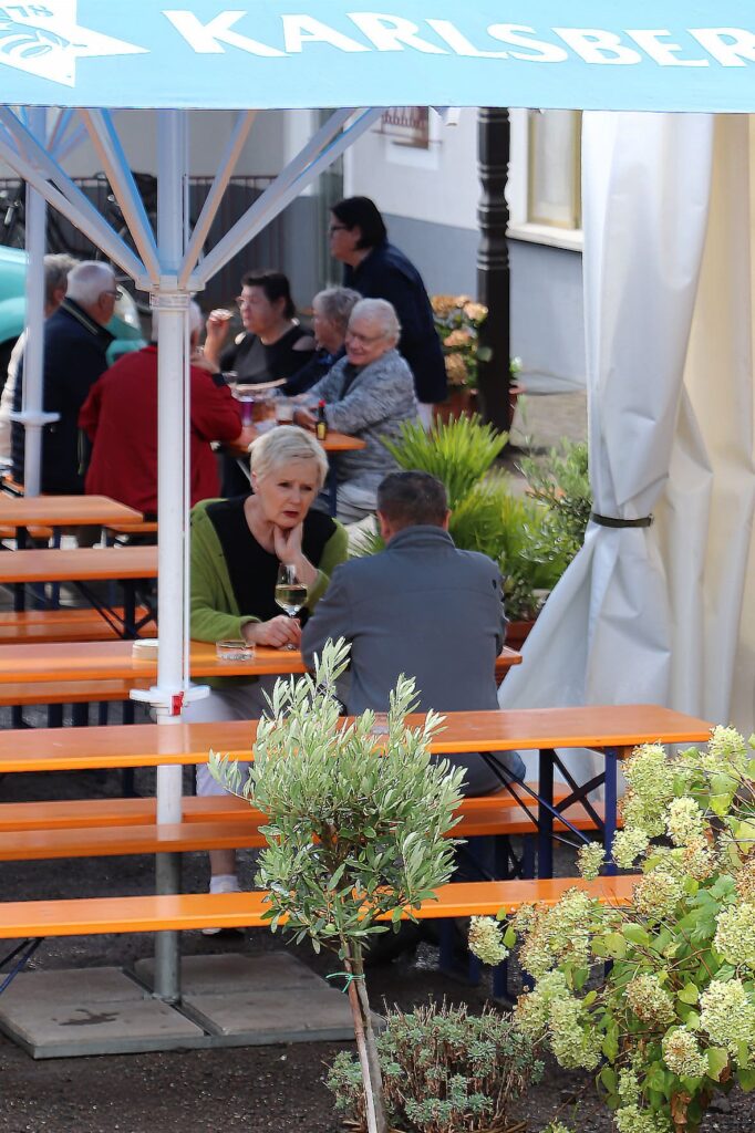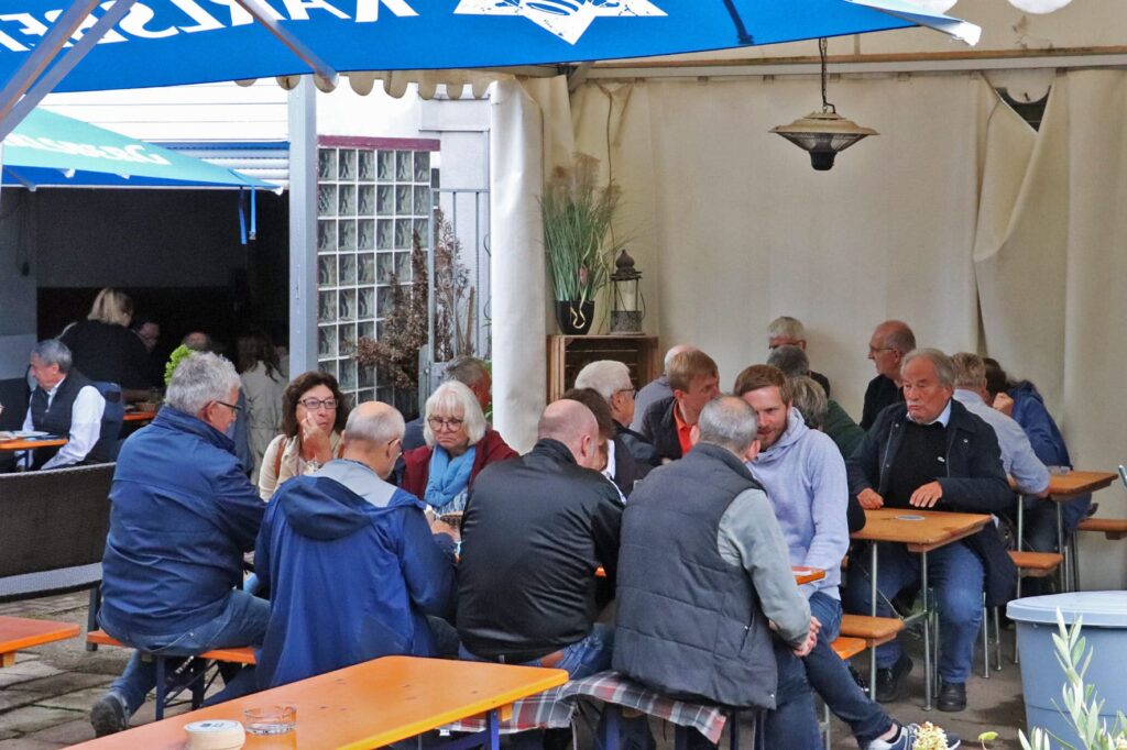 Auch bekannte Gesichter mischten sich unters Volk: Ortsvorsteher Philipp Vollmar, Peter Fuchs, Ex-Landrat Theophil Gallo, „Hennes“ Ecker und das Wirtepaar Regina und Arno „Chapuisat“ Bach vom Sportzentrum genossen die gemütliche Runde im Gasthaus und im Biergarten. Selbst ein kräftiger Regenschauer konnte die Stimmung nicht trüben – die großen Sonnenschirme taten kurzerhand als Regenschirme Dienst, und das Essen schmeckte trotzdem. Den Abschluss bildete am Dienstag traditionell das Heringsessen. Mit Pellkartoffeln serviert, fanden die eingelegten Fische großen Anklang und rundeten die Kerb perfekt ab.