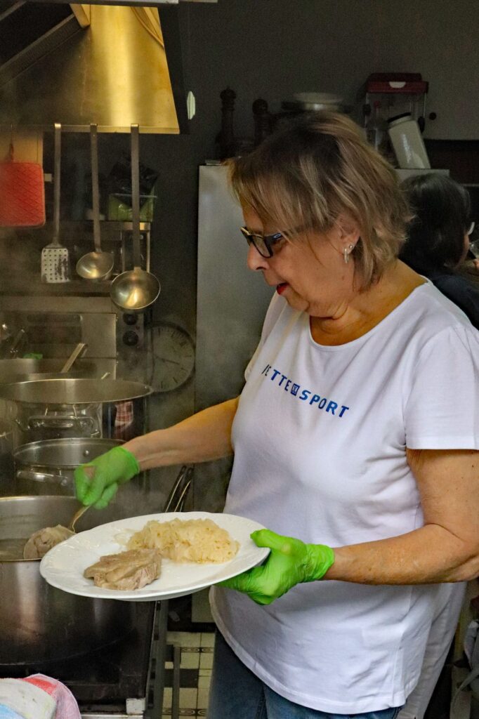 Am Kerwemontag startete der Tag zünftig mit einem Frühschoppen, der sich locker bis in den Nachmittag zog. Für Petra und ihr Team hieß das: volles Haus und jede Menge zu tun. Auf den Tisch kamen Wellfleisch, Leberknödel und deftige Schlachtplatten – Klassiker, die einfach dazugehören. Kein Wunder, dass sich übers Jahr viele Gäste genau dieses Essen zur Kerb nicht entgehen lassen und zu Stammgästen geworden sind.