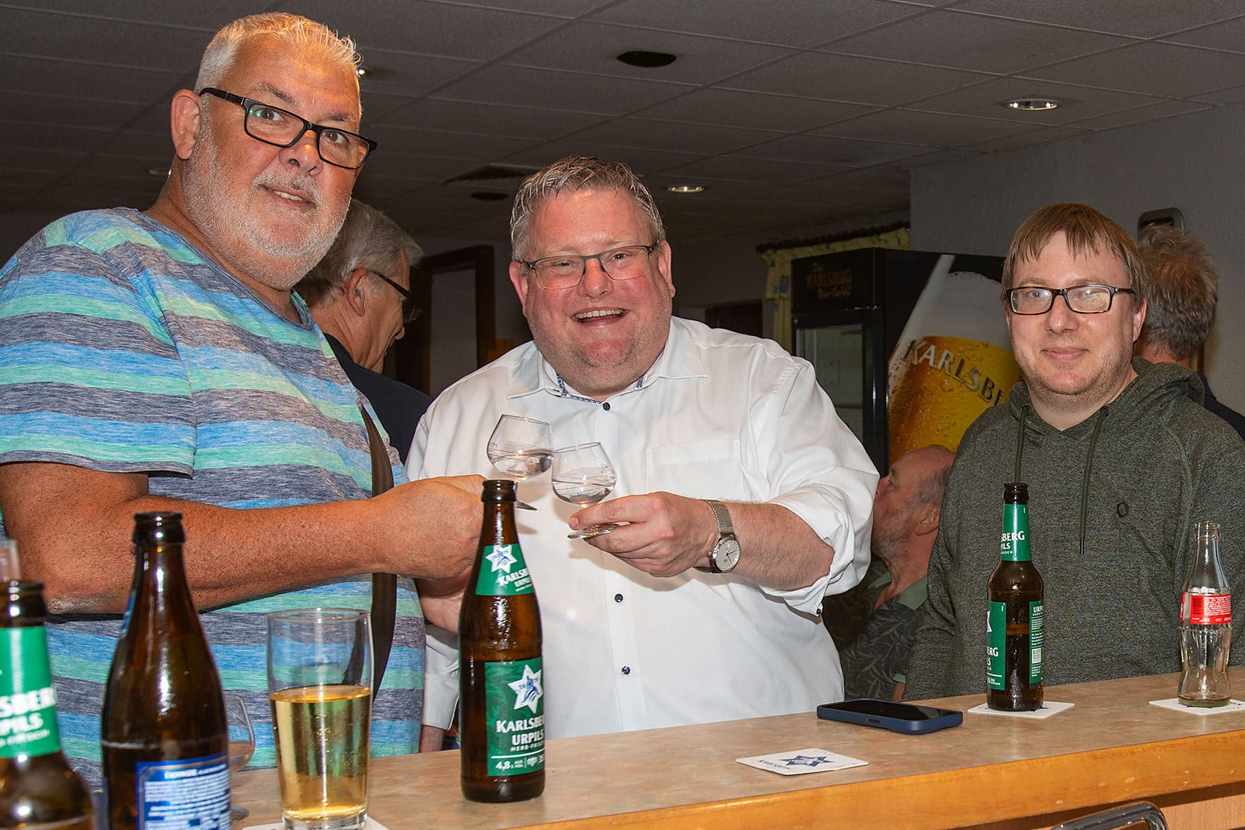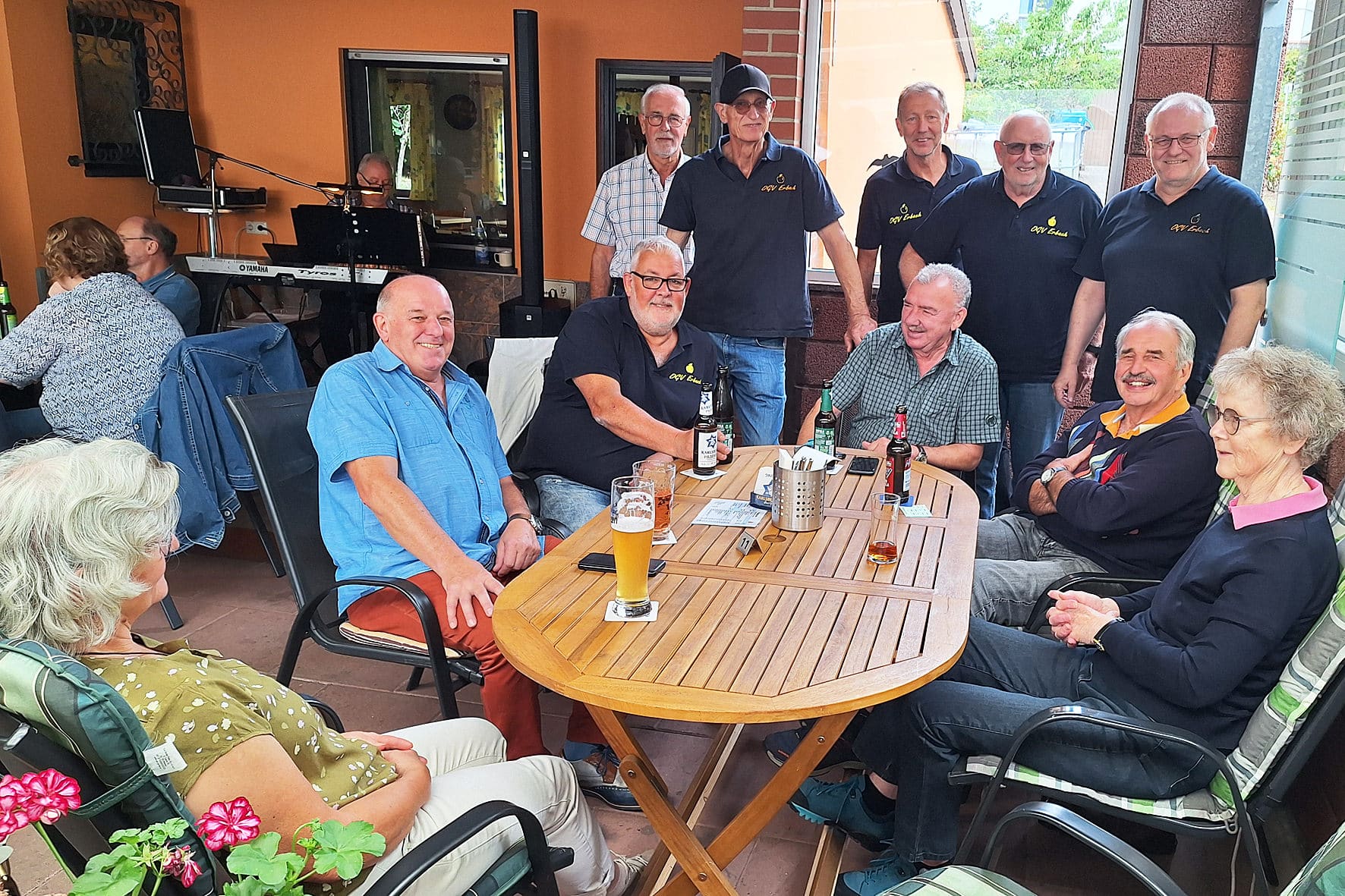 Der traditionsreichste Tag ist und bleibt der Kerwemontag. Früher zog man an diesem Tag noch von Kneipe zu Kneipe, aß ein Häppchen, trank ein Gläschen und weiter ging’s. Heute ist das nur noch beim OGV und der SG Erbach so richtig möglich – aber die Tradition lebt! Los ging’s am Vormittag beim OGV in der Steinbachstraße, wo Spieler und Gäste zusammen feierten. Am Abend ging’s dann zurück zur SGE, denn ab 19 Uhr gab’s Livemusik mit dem Duo „Brightstar“. Klein, aber fein – eine Kerb, die von Jung und Alt gefeiert wurde.