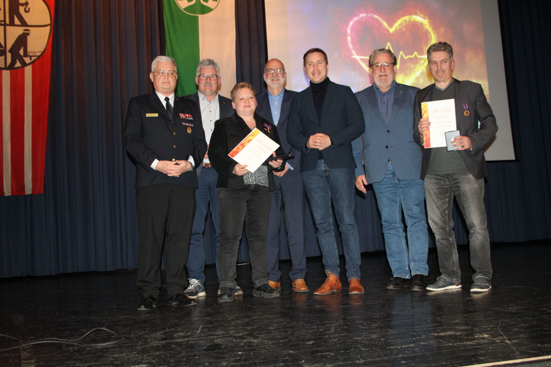Gleich zum Auftakt wurde eine besondere Auszeichnung vergeben: Simone Lukas und ihr Partner Christophe Tupinier erhielten die Ehrennadel des Deutschen Feuerwehrverbandes. Beide engagieren sich seit 10 Jahren intensiv für die Partnerschaft der Feuerwehren Homburg und La Baule und sorgen für einen regen Austausch. Lukas ist darüber hinaus bei der Stadt für die Städtepartnerschaft zuständig. Im Zusammenhang mit dieser aktiven Kooperation wurden zudem vier besonders verdiente Feuerwehrmänner aus dem Kreis der Partnerfeuerwehren geehrt.