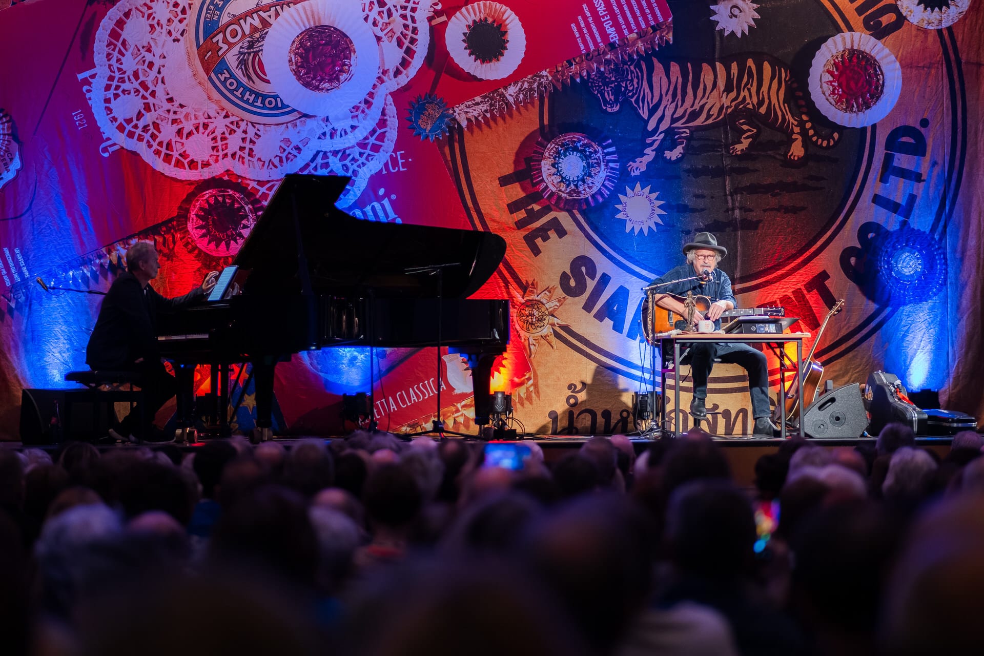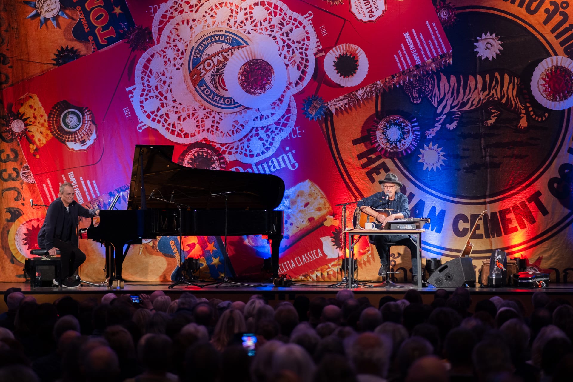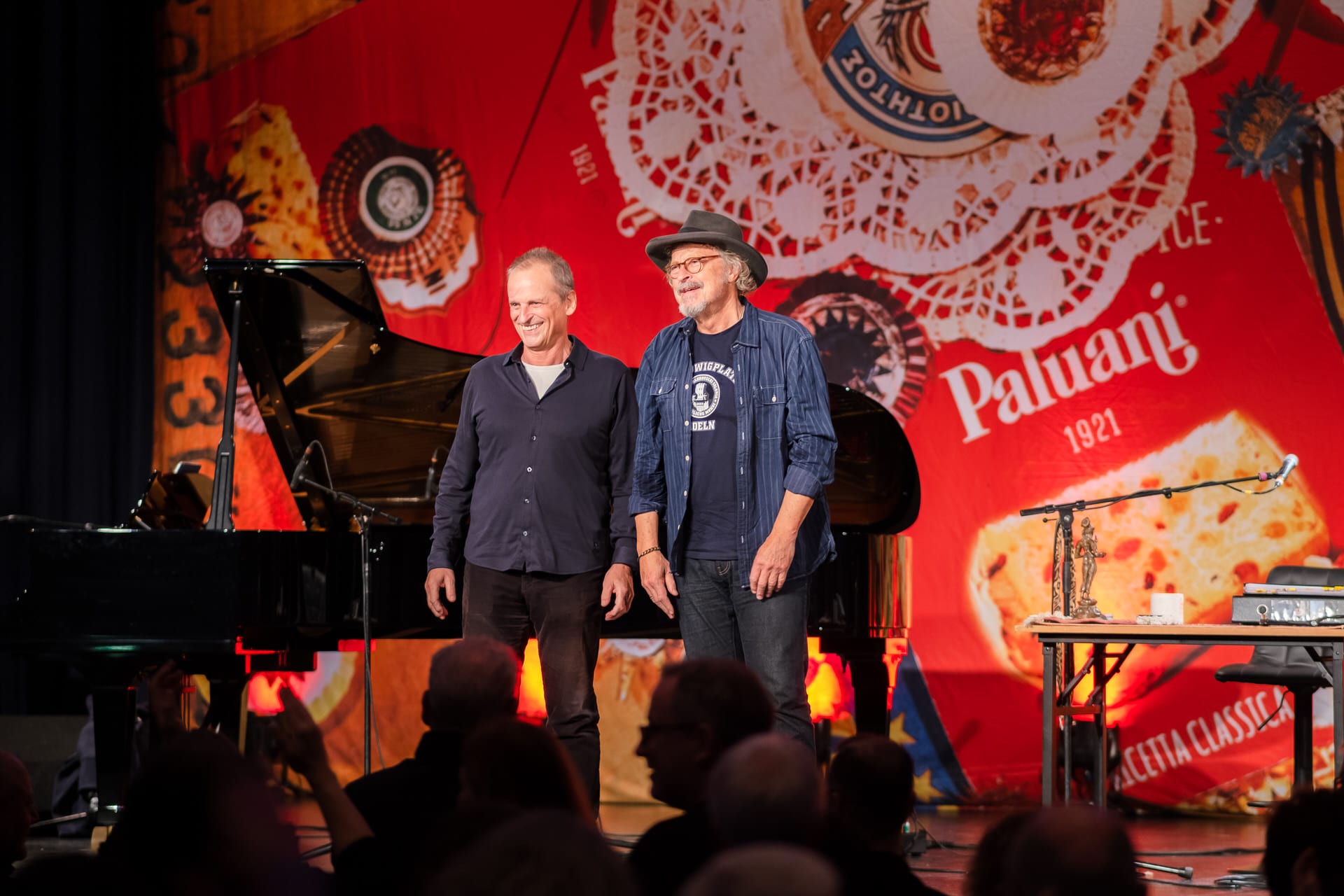 Dass nur Klavier und Gitarre diese Veranstaltung trugen, vergaß man nach wenigen Minuten. Herting war wunderbar fröhlich aufgelegt und versprühte echte Spiellaune. Er harmonierte absolut perfekt mit Niedeken und legte sich mit den wildesten Piano-Soloeinlagen mächtig ins Zeug. Dabei war es kein Wettspiel, kein Kontrast – vielmehr ein Duo, das sich gegenseitig trägt. Stets sah man, wie sie Blickkontakt halten, sich ohne Worte zur Musik abstimmen und es damit instrumental richitg krachen ließen.