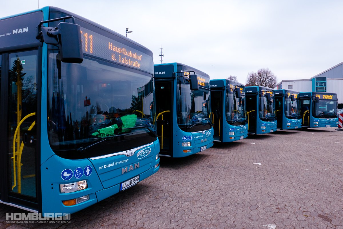 Ist bei den Linien und Taktzeiten alles beim Alten geblieben, gibt es doch bei der Technik etwas Neues: Zukünftig werden sechs hochmoderne Midi-Busse den Straßenverkehr im Stadtgebiet prägen und das im bekannten, einheitlichen Stadtbusdesign. Mit einer Länge von 10,30 Metern sind sie etwas kürzer als herkömmliche Stadtbusse (12,50 Meter), was insbesondere in den engen Straßen der Homburger Altstadt oder in der Birkensiedlung von Vorteil ist. Für einen barrierefreien Einstieg besitzen sie unter anderem eine Klapprampe für Rollstühle. Ein Bildschirm und Sprachansage teilt den Fahrgästen die nächsten Haltestellen mit. Außerdem gibt es eine Mehrzweckfläche, die es erlaubt, Rollstühle, Kinderwagen oder Fahrräder abzustellen, so Bernhard Ehmann, Geschäftsführer der DB Regio Bus Südwest GmbH. Durch den Einsatz der neuen Modelle werde auch die EURO 6-Norm erfüllt. Hierbei kann der Ausstoß von Stickoxiden um das fünffache und die Feinstaubbelastung zukünftig um die Hälfte reduziert werden.
