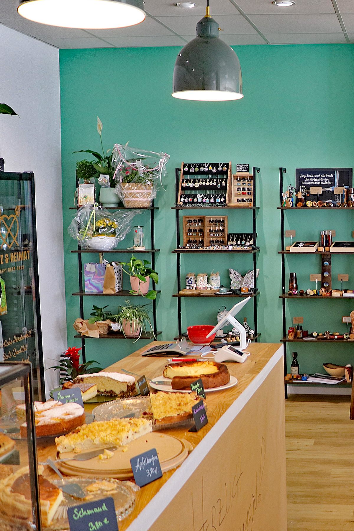 Doch wer hier einkehrt, bekommt weit mehr als Kaffee und Kuchen. Die GenussWerkstatt lädt zum Entdecken ein: In Regalen und Vitrinen finden sich kunsthandwerkliche Produkte, Geschenkideen und handverlesene Kleinigkeiten aus kleinen Manufakturen – alles liebevoll arrangiert und mit einem klaren Blick fürs Besondere. Der Raum wirkt offen, warm und durchdacht – ganz so, als hätte man inmitten der Stadt eine kleine kreative Oase geschaffen.