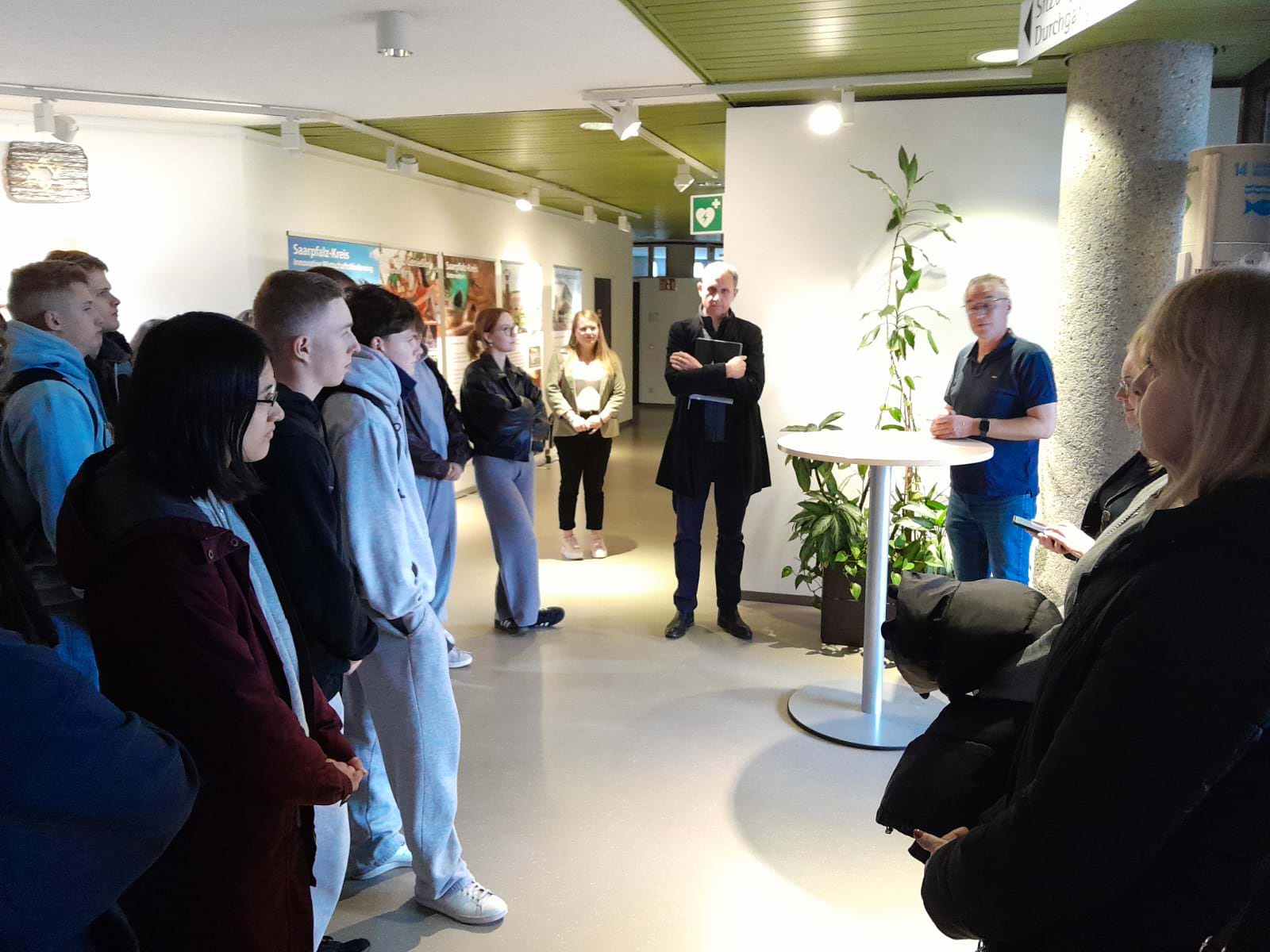 Landrat Frank John empfing die Gruppe im Landratsamt und informierte über die Partnerschaften des Saarpfalz-Kreises mit der Region Podkarpackie sowie über Hilfsaktionen für die Ukraine. Anschließend besuchten die Jugendlichen die Ausstellung „Diaspora“, die ein Zeichen gegen das Vergessen und für Menschlichkeit setzt.