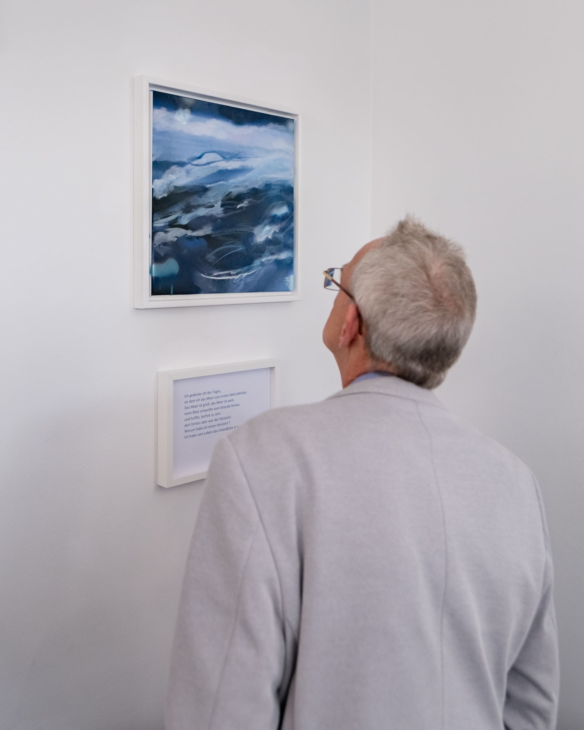 Was diesen Abend so besonders machte, war das Zusammenspiel. Die Lesung forderte viel, die Ausstellung öffnete sich dafür aber auch breit und außergewöhnlich vielfältig. Worte und Bilder griffen ineinander, gaben einander Tiefe. Wer nach der Veranstaltung durch die drei Etagen der Galerie ging, spürte diesen Dialog: Leinwände, Fotografien, Sternenhimmel, die Stimmen der Literatur – alles im Gespräch miteinander.