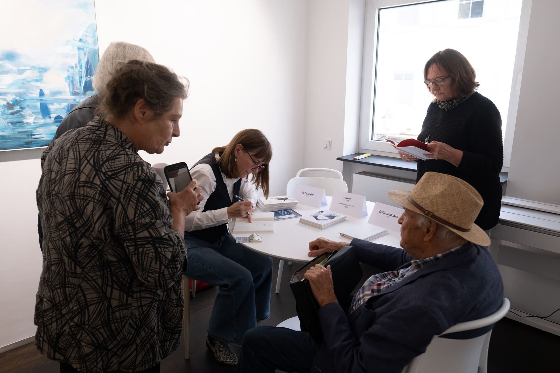 Nach beiden Veranstaltungen blieb noch viel Zeit, miteinander ins Gespräch zu kommen. Am Büchertisch in der ersten Etage konnten Besucher Sabine Göttels Werke erwerben und signieren lassen. Zwischen Staffeleien, Fotografien und Bildern entstanden kleine Gesprächsinseln, neugierige Blicke, leises Staunen und stetige Neugier.