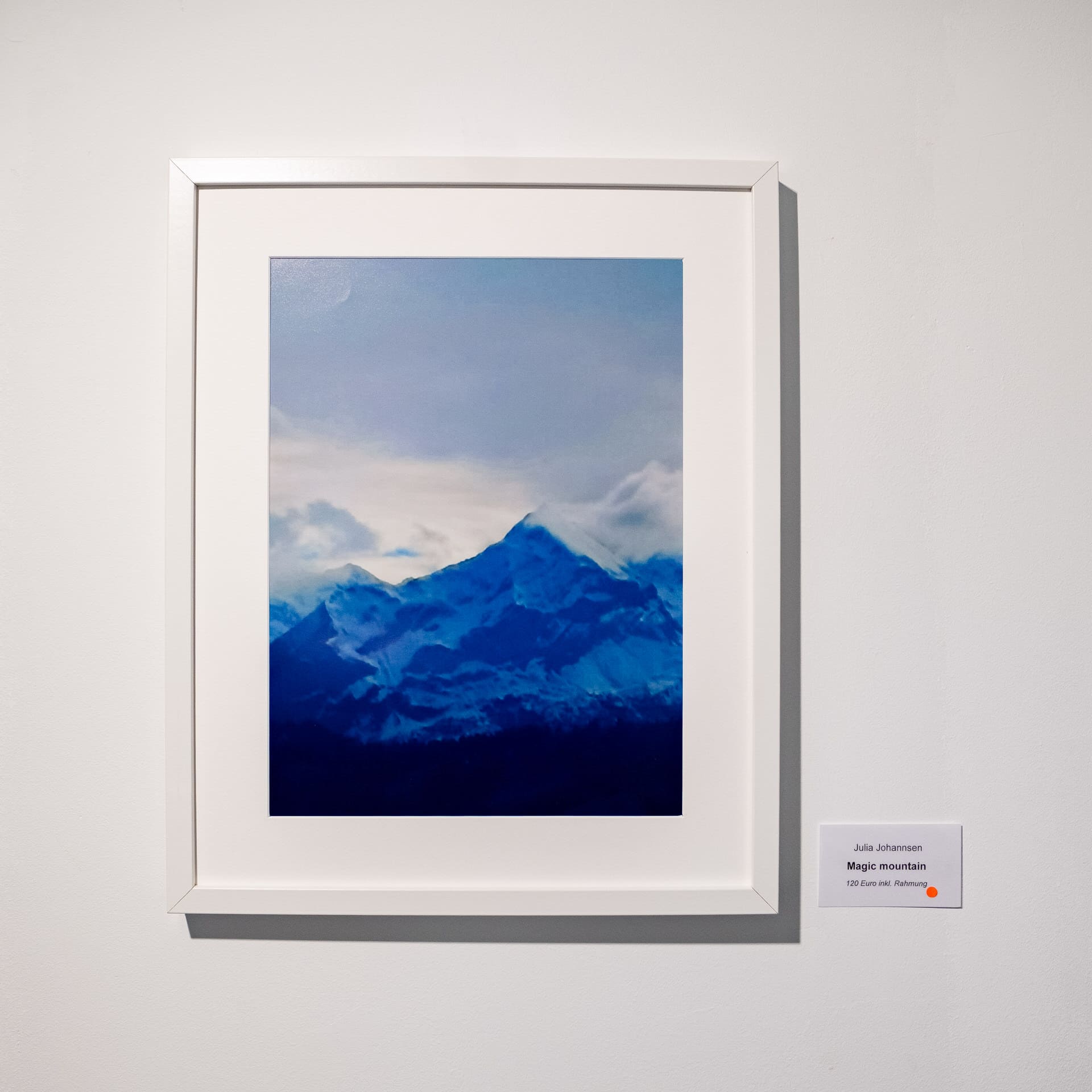 So präsentierte Julia Johannsen eigene Arbeiten, in denen Berge und Seen wie aus einer Zwischenwelt erscheinen. Ihre Bilder tragen etwas Traumartiges in sich – ein Spiel zwischen Realität und Imagination, das den Betrachter in eine stille, fast zeitlose Atmosphäre hineinzieht.