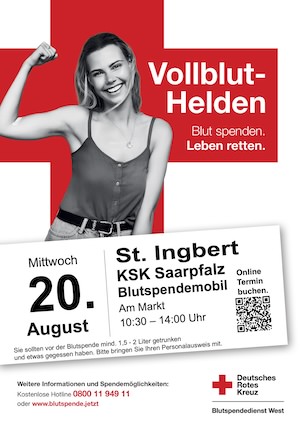 Ein kleiner Piks – und doch kann er über Leben entscheiden: Wer am Mittwoch, 20. August, durch die Innenstadt von St. Ingbert spaziert, kann spontan zum Lebensretter werden. Direkt vor der Kreissparkasse Saarpfalz steht an diesem Tag von 10:30 bis 14:00 Uhr ein mobiler Blutspendebus des Deutschen Roten Kreuzes (DRK) bereit. Unterstützt wird die Aktion von der Sparkasse selbst – mit einem klaren Ziel: die Versorgung mit Blutkonserven sichern, gerade in der Urlaubszeit.