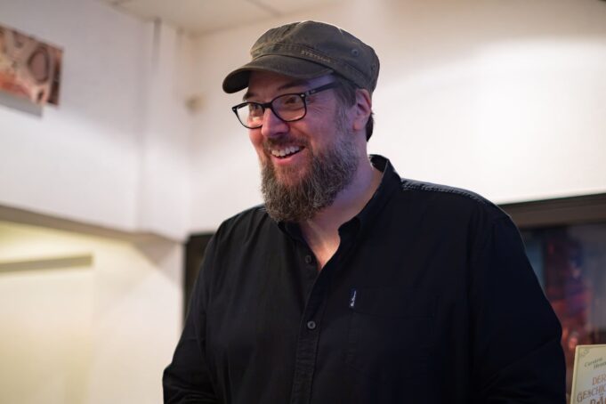 Doch wie kam Henn eigentlich zu dieser außergewöhnlichen Geschichte? Den ersten Impuls bekam er schon 2012, verrät er dem Homburger Publikum. Eine Bekannte, die in einer Bibliothek arbeitete, erzählte ihm von einem Aachener Buchhändler, der abends nach Ladenschluss zu Fuß Bücher zu seinen Kunden brachte – Haluk Turat. Diese kleine Begebenheit ließ Henn nicht mehr los. Doch er suchte bewusst nicht das Gespräch mit Turat. Stattdessen wollte er seine eigene fiktive Geschichte entwickeln, mit einer Hauptfigur, die zwar inspiriert ist, aber völlig unabhängig lebt: Karl Kollhoff. Über Jahre blieb es bei dieser Figur – eine Idee ohne Handlung. Erst als Henn die Figur der neunjährigen Schascha erdachte, bekam die Geschichte ihren Kern. Mit ihr öffnete sich das ganze Erzählen, die Handlung war plötzlich da. „Mit Schascha fiel alles an seinen Platz“, sagte er in Homburg. Der Roman erschien schließlich 2020 – mitten in der Pandemie. Und erst 2021, also ein Jahr später, begegnete Henn erstmals dem echten Haluk Turat, der ihm unbewusst die Inspiration geliefert hatte.