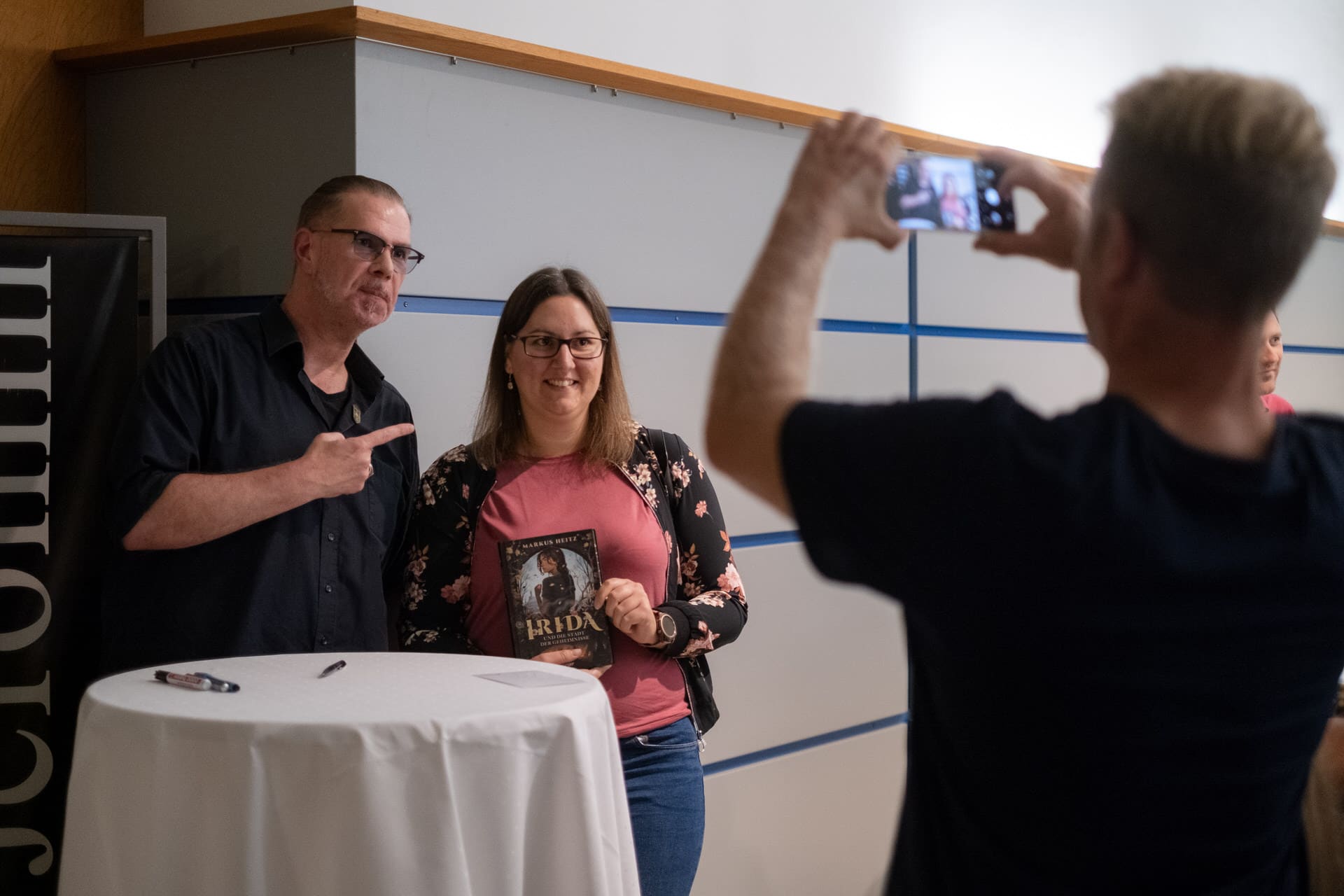 Klar ist: Diese Reise hat gerade erst begonnen. Der zweite Band, „Irida und die Rätsel der Ruine“, erscheint im Januar, am dritten Teil arbeitet Heitz bereits – die Veröffentlichung ist für den Sommer geplant. Wie viel Arbeit zwischen letzter Manuskriptseite und Buchhandlung liegt, machte er an diesem Abend transparent: Zunächst folgen mehrere Überarbeitungsrunden, bevor der Text ins Lektorat geht. Dort wird gefeilt, geschliffen, gestrichen, ergänzt – bis jedes Detail sitzt. Parallel dazu entsteht der Satz, also das eigentliche Layout des Buches, und die Covergestaltung. Dann erst rücken Marketing und Vertrieb an, ehe der Druck die finale Form liefert. „Das Schreiben selbst ist schnell“, sagte Heitz, „aber bis ein Buch auf der Ladentheke liegt, braucht es seine Zeit.“ Für das Publikum war das mehr als nur ein Produktionsbericht – es war die Zusage, dass die Reihe mit Verlässlichkeit wächst. Wer sich an diesem Abend in Irida und ihre Furchtlosen verliebt hat, kann sicher sein: Die nächsten Kapitel sind längst unterwegs.