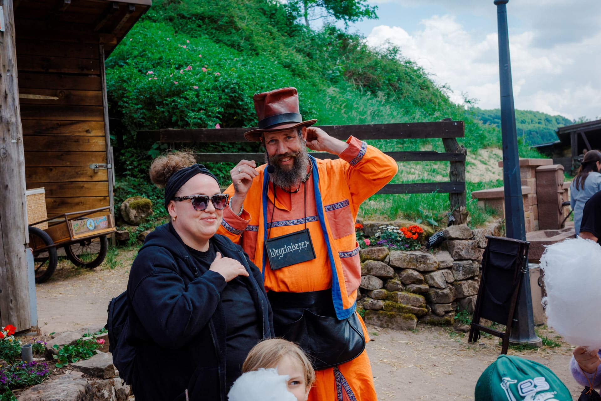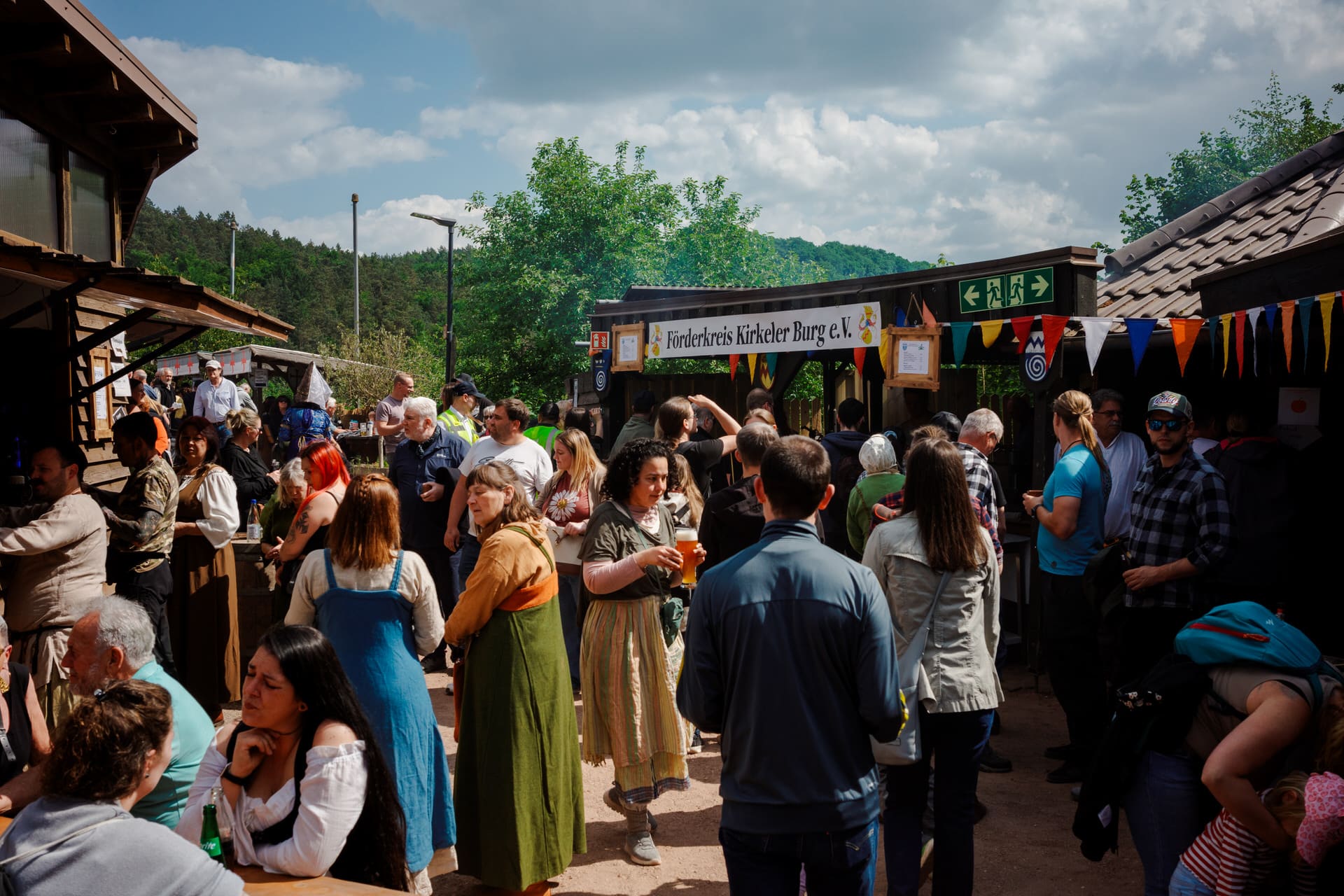 Der Besucherandrang gibt ihm recht: Schon am Eingang wimmelte es von Menschen in Gewändern, Familien mit Kinderwagen, neugierigen Spaziergängern und Mittelalterfans mit Trinkhorn. Über den Tag und das Wochenende verteilt zog es Tausende bei Sonnenschein auf die Höhen von Kirkel. Zwischen rustikalen Holzbuden, Metverkauf und handgeschmiedeten Schwertern wurde gelacht, gestaunt, gegessen – und das ganz ohne jedes Zeitgefühl, friedlich und unterhaltsam. Wer durch das Burggelände schlenderte, tauchte ein in eine Welt, in der Händler um die Gunst der Kunden rangen, Musikanten spielten und das Handwerk mit echtem Feuer betrieben wurde.