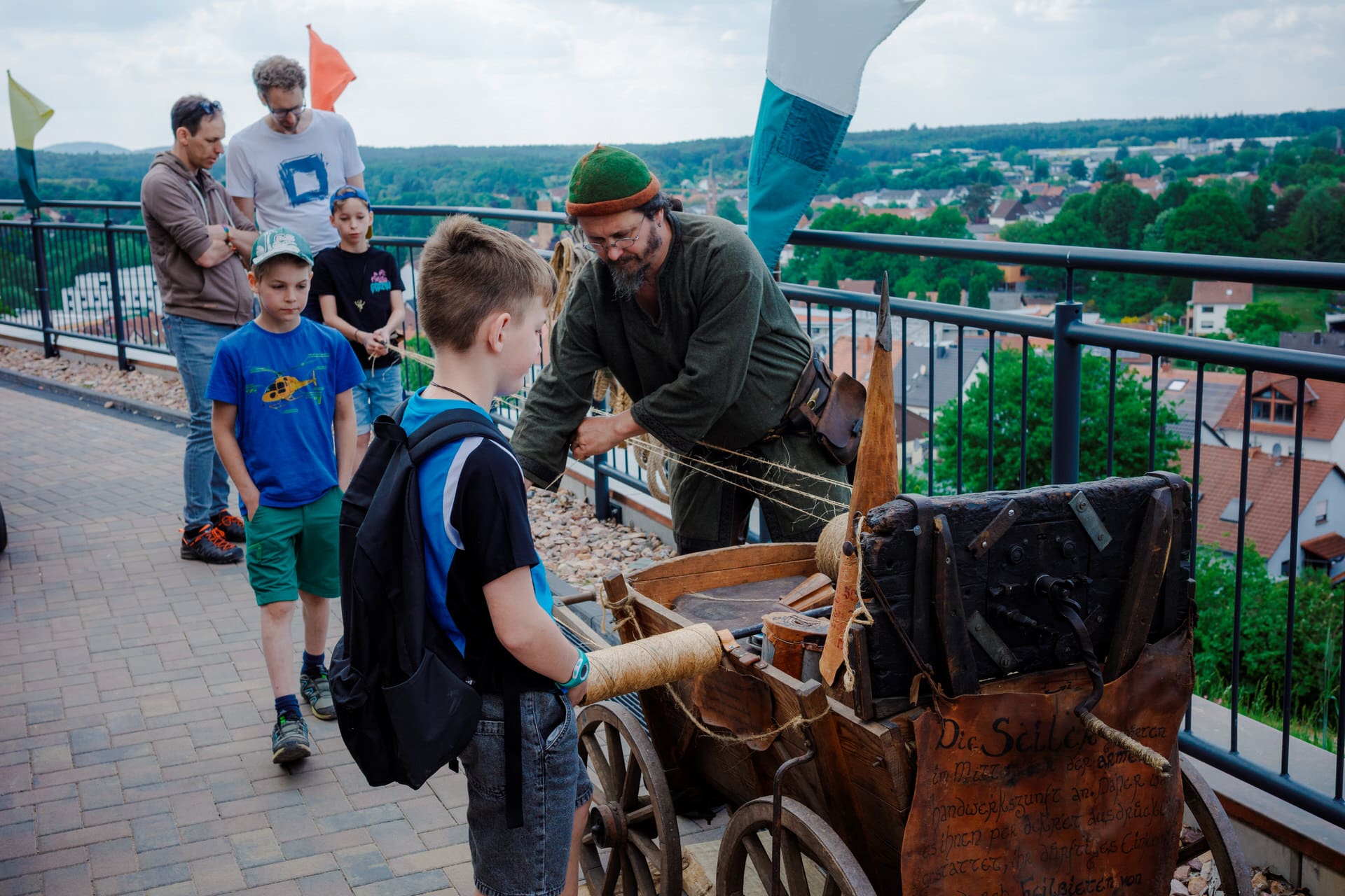 „Ganz ehrlich: Für mich ist das ein großes Erlebnis. Die Burg hat diesen Markt einfach verdient. Und er gehört genau hierher“, sagt Hochlenert. Dass er sich auskennt mit der Geschichte der Mauern, merkt man schnell – nicht nur, weil er stilgerecht gekleidet war. Die mittelalterliche Tracht stammt nämlich aus der Schneiderei der AQuiS – wie viele der Gewänder, die man auf dem Markt zu sehen bekam.