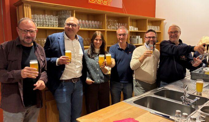 „Ich stecke hier viel Herzblut rein. Es ist ein Projekt, von dem ich geträumt habe, seit ich 16 bin“, offenbarte Bernd Pfeil in seiner Begrüßung. Vor allem die „gigantische Küche“ habe es ihm angetan, in der er sich nun austoben könne. Natürlich wird Bernd Pfeil, dem es nichts ausmacht, wenn ihn seine Gäste „Bier-Bernd“ nennen, mit seinem selbstgebrauten Bier punkten können. „Vier Biere aus dem Zapfhahn wird es geben“, kündigte der Gastronom nicht ohne Stolz an. Denn der Braukunst hat er sich seit der Pandemie mit Leib und Seele verschrieben. Bernd Pfeil fühlt sich im Bliesgauwohl, daraus macht er kein Geheimnis. Im Mai 2024 übernahm er die Gastronomie im Kulturlandschaftszentrum „Haus Lochfeld“ und mit seiner Klein-Brauerei „TinyBrew“ ist er erfolgreich auf Wochenmärkten und Events unterwegs, so beispielsweise von Beginn an auch auf dem Gersheimer Mondscheinmarkt.