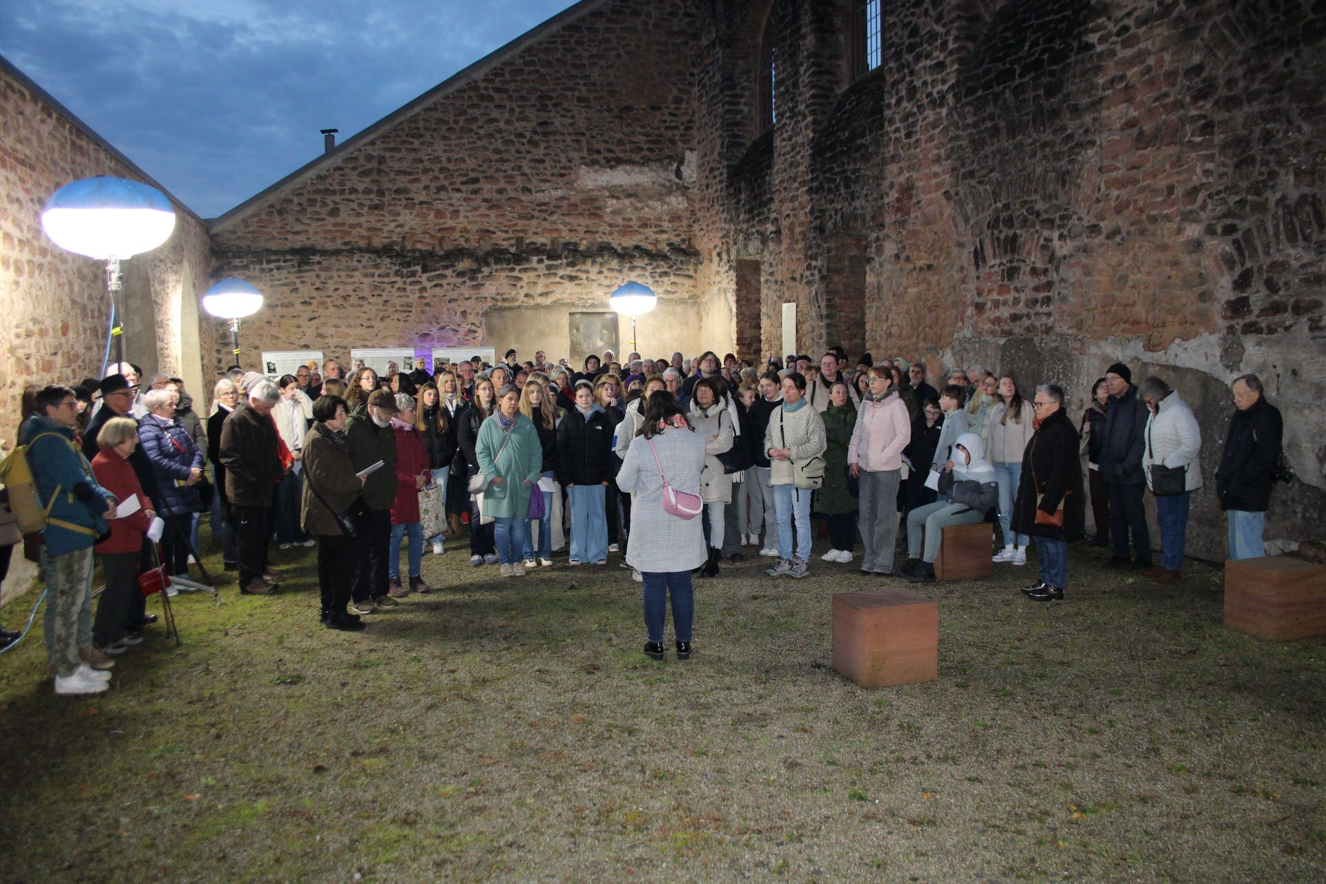 In der Ruine der Synagoge sagte Nathalie Kroj: „Wir sind zusammengekommen, um ein Zeichen gegen menschenverachtendes Gedankengut und Handeln zu setzen. Wir werden nicht müde, dieses Gedenken zu wiederholen: Generation für Generation – Jahr für Jahr.“ Abschließend erinnerte sie daran, Verantwortung für Freiheit und ein respektvolles Miteinander zu übernehmen. Nach dem gemeinsam gesungenen „Hevenu schalom alejchem“ endete die Gedenkveranstaltung, an der auch Gäste jüdischer Familien aus Straßburg und Saargemünd teilnahmen, für deren Vorfahren im vergangenen Jahr Stolpersteine verlegt wurden.