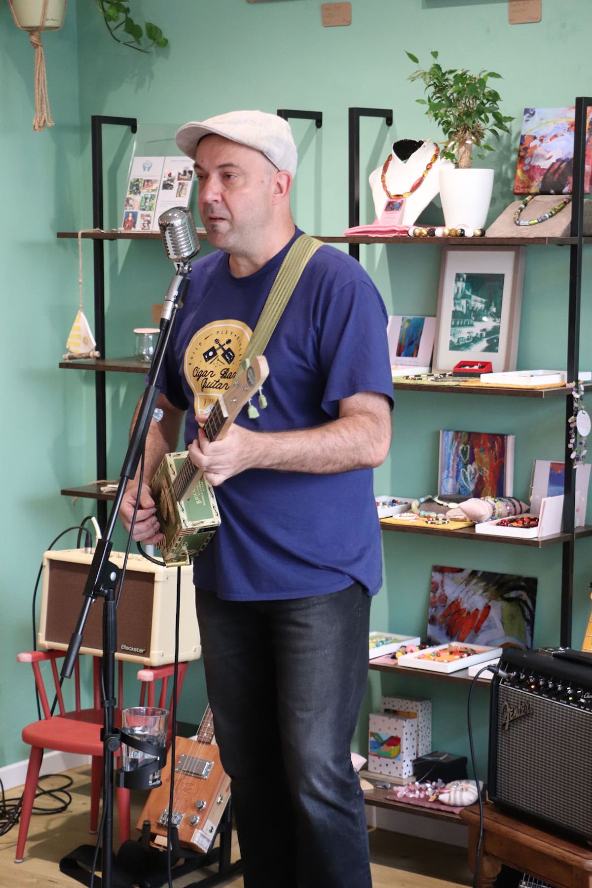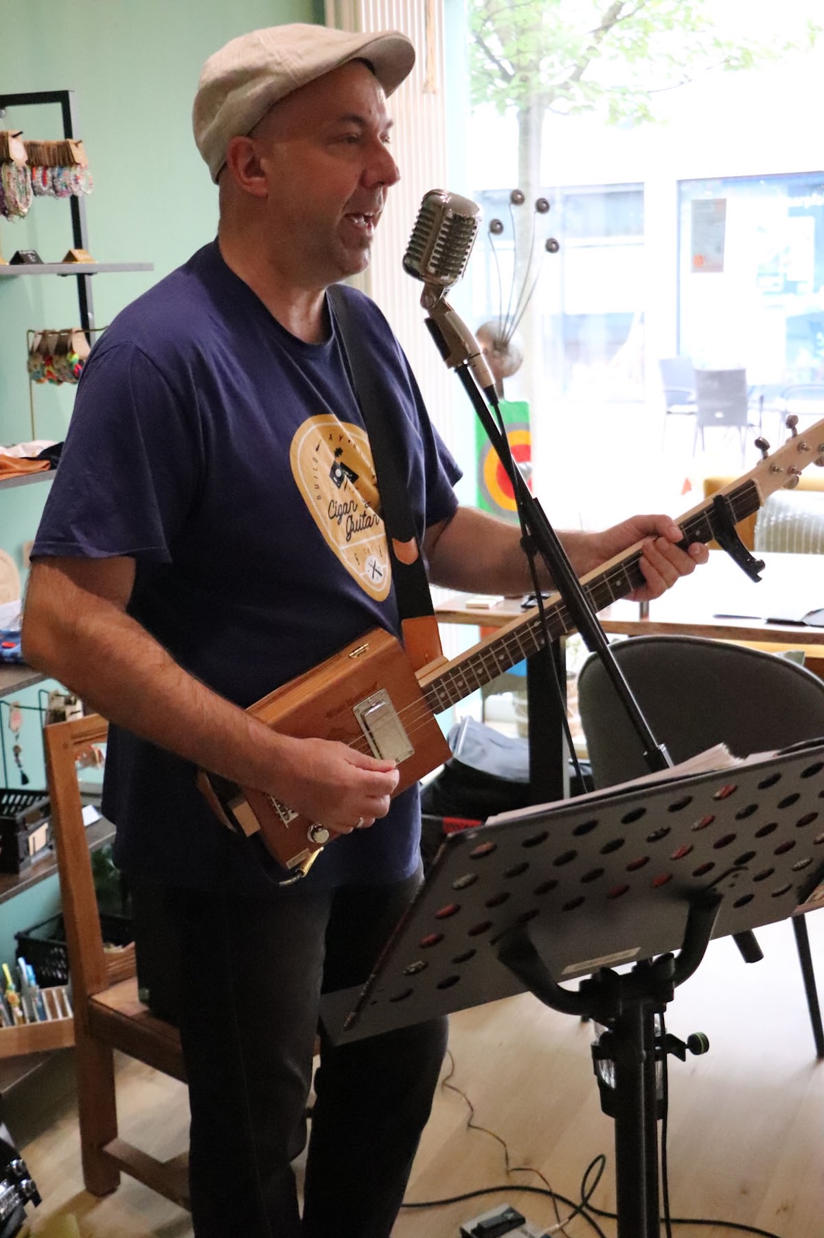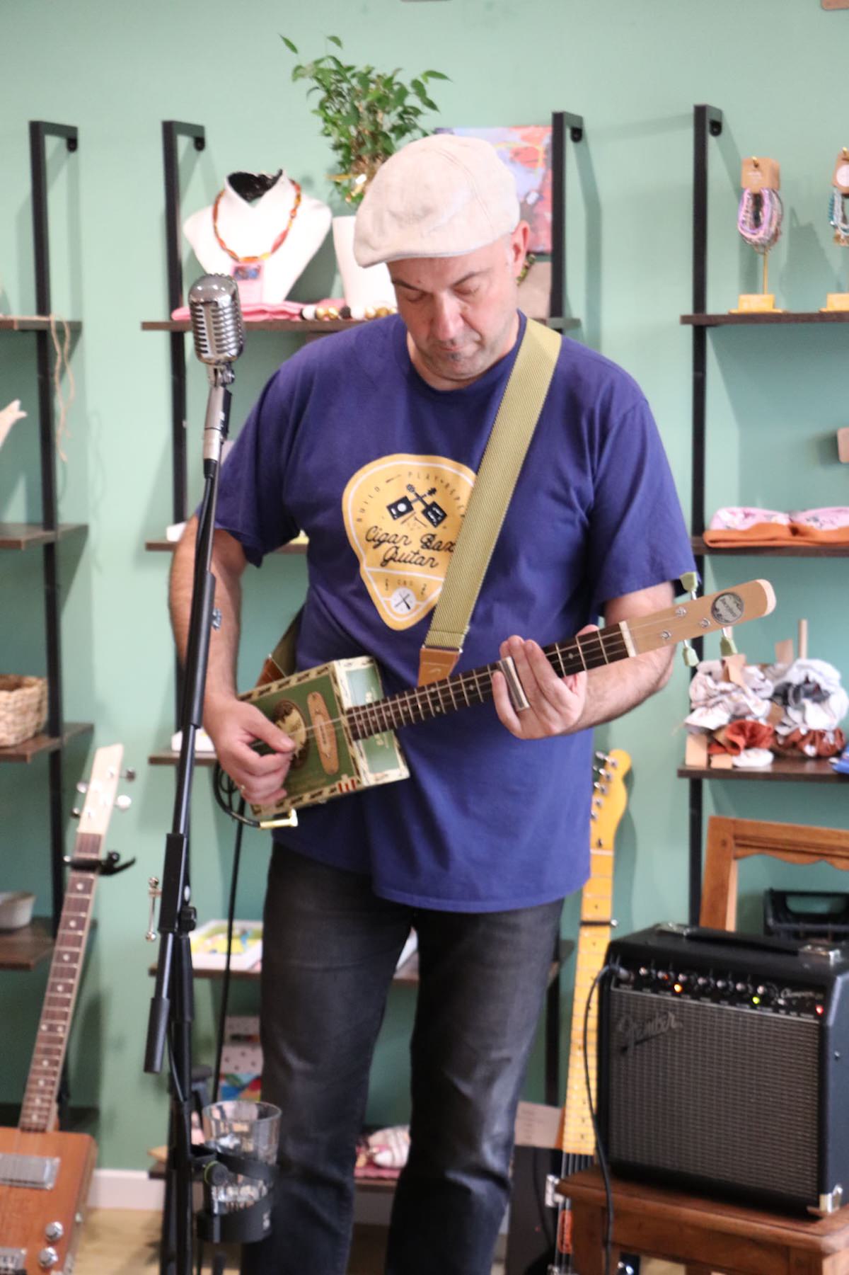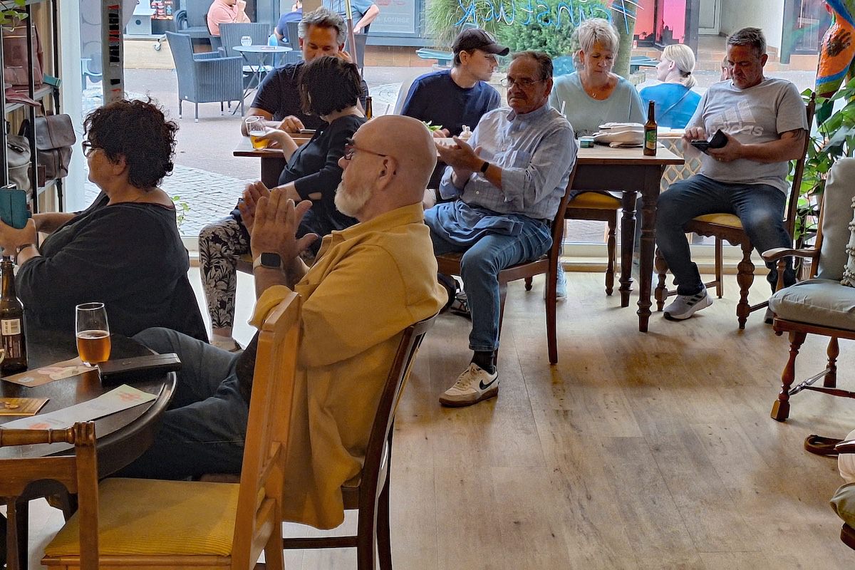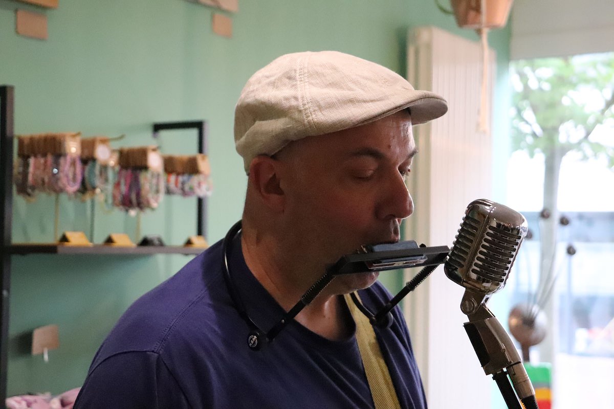 Einen stimmungsvollen Freitagabend erlebten die Gäste der GenussWerkstatt am 22. August in der Homburger Fußgängerzone: Musiker und Gitarrenbauer Fabian Ecker war zu Gast – mit selbstgebauten Cigarbox-Gitarren und einem Repertoire zwischen Blues, Rock und Klassikern. Es war sein erster Auftritt in dem inklusiv geführten Café – und einer, der ihm wie dem Publikum gleichermaßen in Erinnerung bleiben dürfte.
