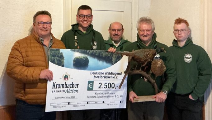 Unterstützt wird dieses Engagement nun von der Krombacher Brauerei, die im Rahmen ihrer Spendenaktion 2.500 Euro an die Deutsche Waldjugend Zweibrücken vergibt. Der Krombacher Gebietsverkaufsleiter Hans Zimmer überreichte den symbolischen Spendenscheck persönlich. Die Zuwendung ist Teil einer größeren Aktion, mit der das Unternehmen seit Jahren gemeinnützige Projekte in ganz Deutschland fördert.
